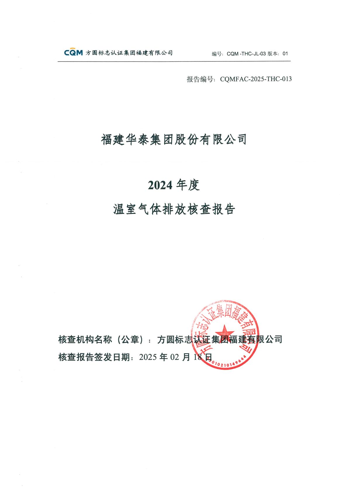 福建華泰集團順利通過2024年度碳排放核查工作2025-03-03