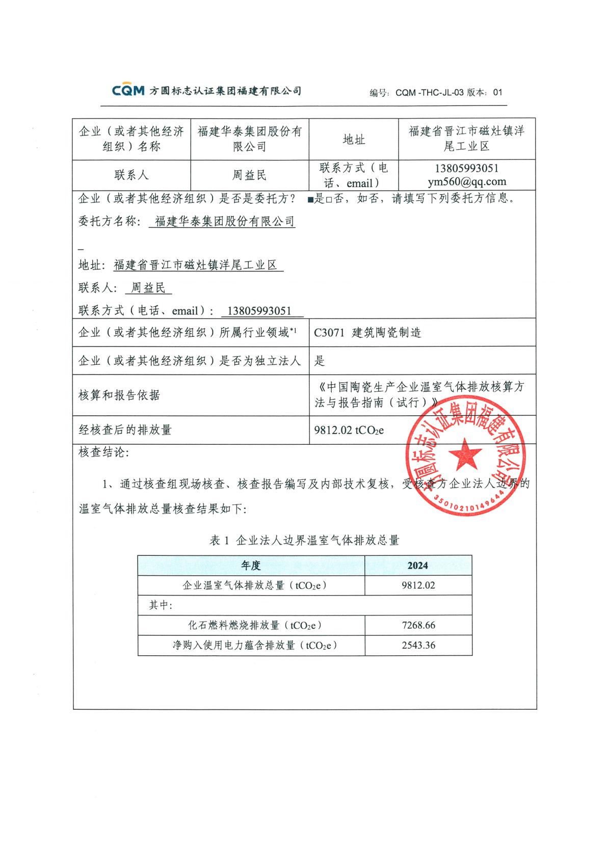 福建華泰集團股份有限公司順利通過2023年度碳核查工作2024-10-08